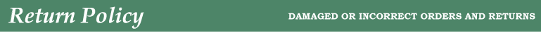 We work very hard to make sure that orders are filled correctly and completely and that they are packaged well to prevent damage. If you experience any problems with your order, please email us with details of the problem within 7 days of receipt. It is also important to save the damaged items and packaging for possible inspection by FedEx. We will do our best to rectify any problems immediately.